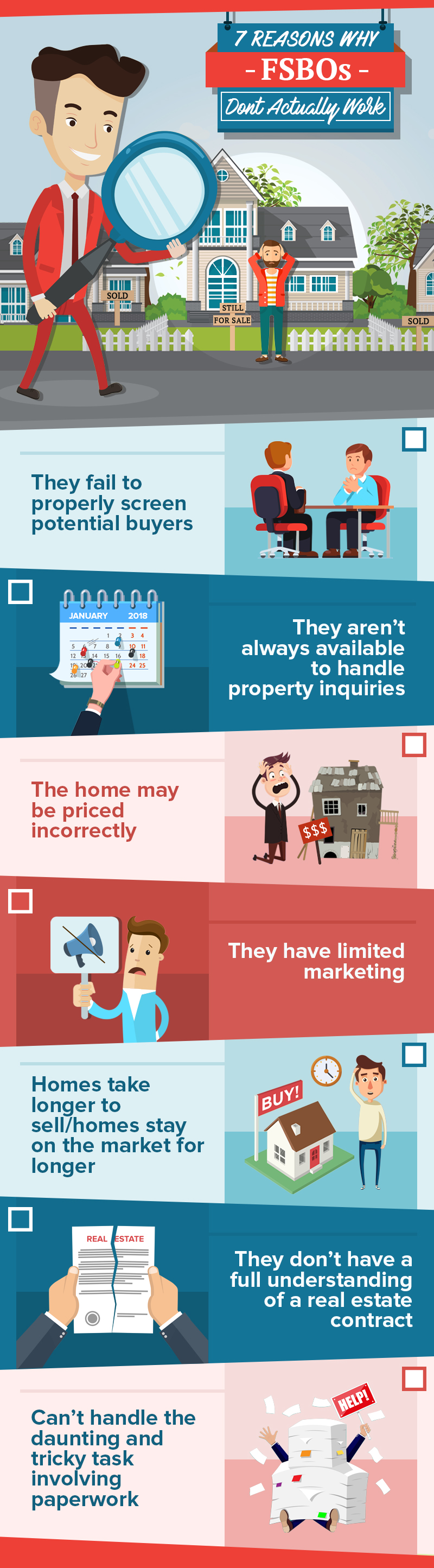 There are many reasons why FSBOs fail in real estate, especially if a seller doesn’t know how to price his or her home correctly, or if property inquiries were handled inefficiently. Here are the top reasons why we think FSBOs don’t actually work, and why it is best to hire a real estate agent who can help with the selling process.